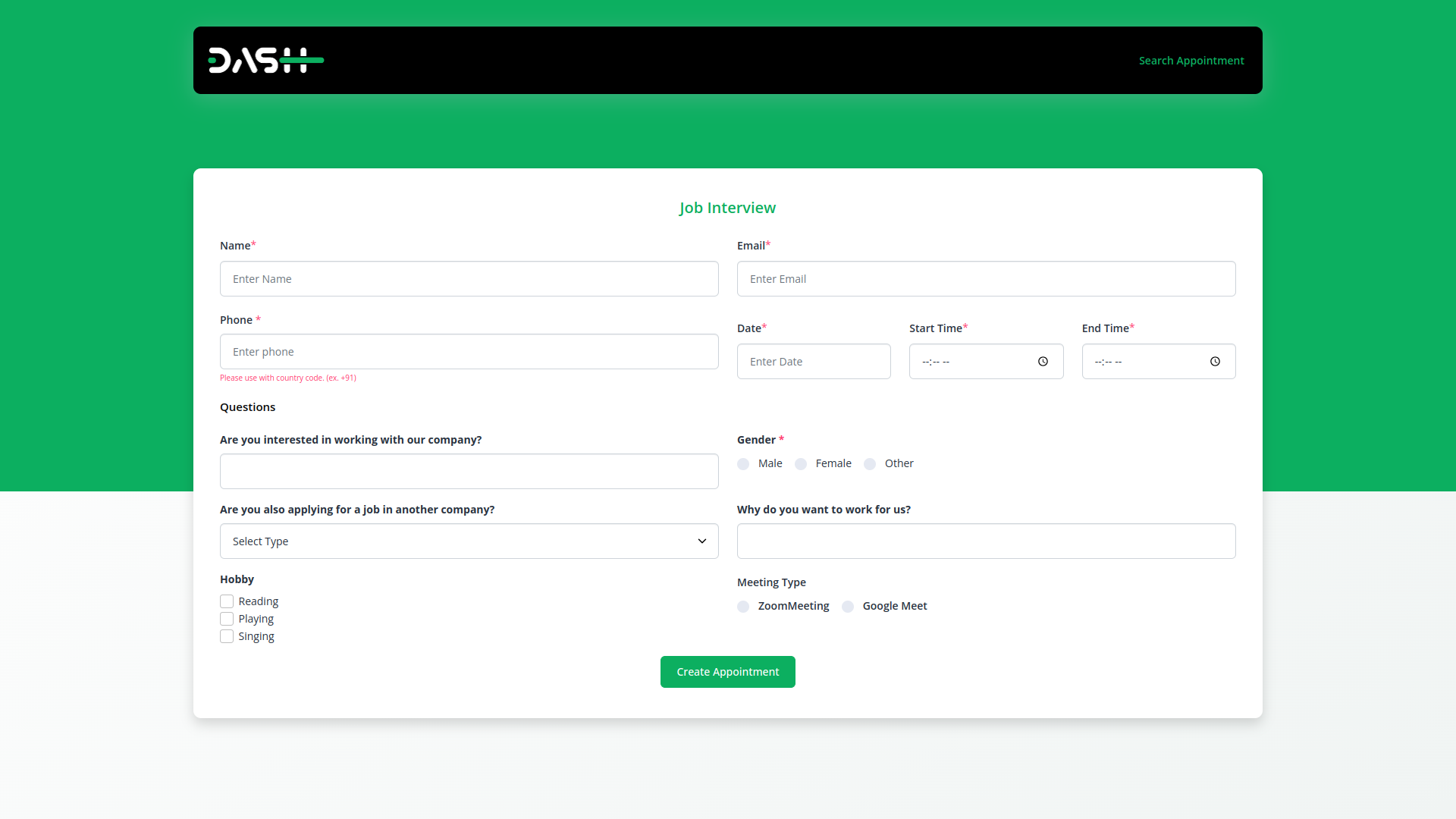 Our user-friendly appointment scheduling system simplifies appointment management, allowing efficient organization, tracking, and optimization for business or personal use. It features a dashboard, calendar button, color change, meeting types, appointment cancel form, appointment callback form, after complete appointment send feedback form, and copy link button for easy form submission. Users can create and update appointments ensuring seamless scheduling and efficient scheduling for their needs.